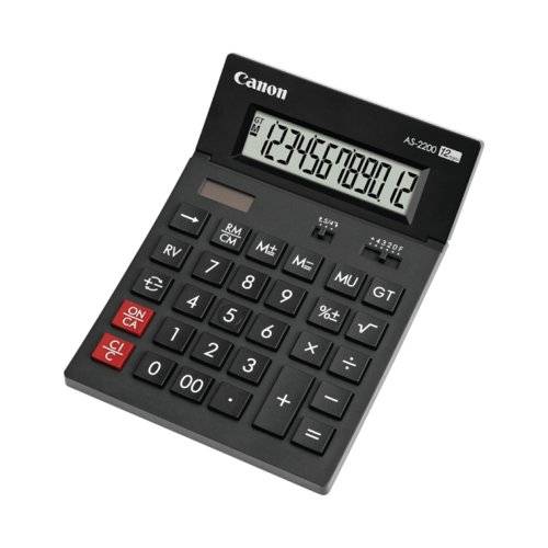 - The Canon AS-2200 12 Digit Desktop Calculator combines a stylish Arc design with substantial environmental credentials making it ideal for organisations and individuals. With practical Grand Total, Decimal selection and Rounding functions. It features a large adjustable LCD Display.