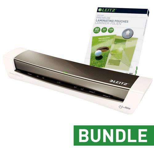 - This Leitz iLAM A3 laminator is ideal for both home or office use and offers hassle free laminating with excellent results. With no complicated settings and a warm up time of 3 minutes, this iLAM laminator features an LED and sound warning indicator to notify you when the machine is ready, and automatically shuts off if inactive for 30 minutes. With an approximate speed of 60 seconds to laminate a 160 micron A4 pouch, this laminator accepts up to 250 micron thick pouches and includes a free starter pack of pouches.