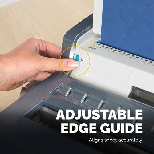 | Adjustable edge guide aligns sheet accurately |