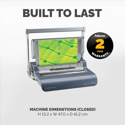 The Quasar wire manual binding machine is ideal for the office environment and frequent use. Comes with a range of user friendly features for increased office productivity and enables easy production of a professional looking wire bound document.