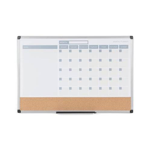 - Functionality times three. The Bi-Office 3-in-1 Magnetic Month Planner is a compact magnetic calendar planner, with a cork stripe on the bottom - which also allows you to pin important cards or notes. It offers three organising and planning solutions in one place. Designed to fit in smaller spaces, our personal home & office products can be used in any working context. Practical and adaptable, this magnetic drywipe monthly planner is the starting point of all efficient planning and organization, boosting performance either in individual or teamwork. This lightweight planning board features a discreet look and comes in the most convenient format. There's even a designated writing area for notes.
