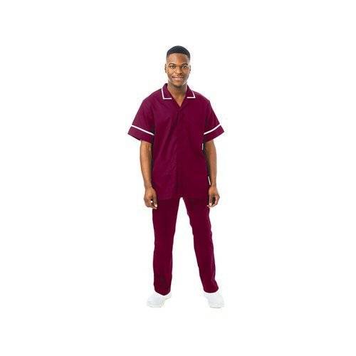 Work in Style PHILZ Male Healthcare Tunic Maroon with White Trim Size 50 inch PHILZMAROWHIT50