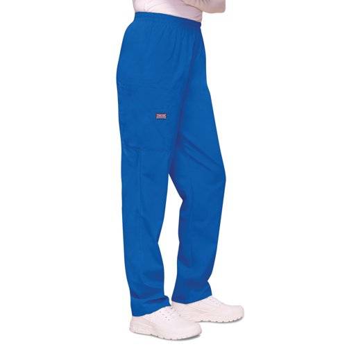 - Designed with a casual unisex style, with the Cherokee 4200 cargo scrub pants, you get an elasticated waist with a natural rise and tapered leg which makes for a perfect fit. The trousers feature two cargo style pockets, a mobile phone pocket and one outside scissor pocket and a small Cherokee Scrubs logo on the right leg.