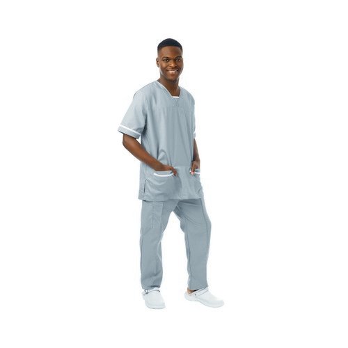 534LW V Neck Lightweight Scrub Top with Trim Pale Grey M 534LWPGRYWHITM