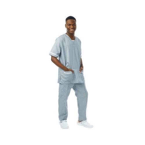 534LW V Neck Lightweight Scrub Top with Trim Pale Grey XS 534LWPGRYWHITXS