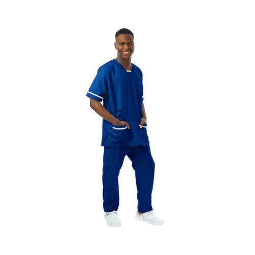 534LW V Neck Lightweight Scrub Top with Trim Royal Blue 2XL 534LWROYAWHIT2XL