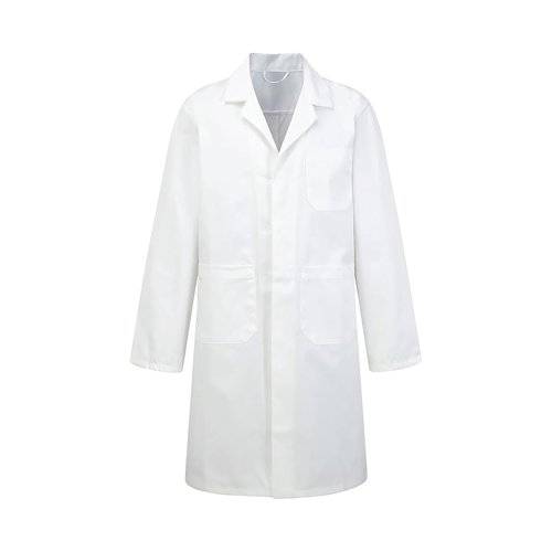 Polyester cotton warehouse coat with one breast pocket and two side patch pockets. Keeps clothes clean and tidy.