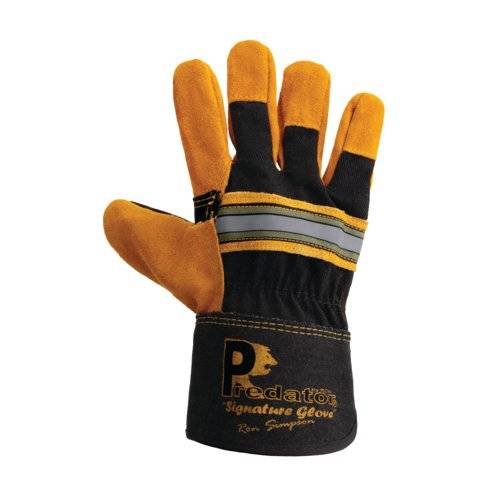 - Predator Signature Tiger Rigger Gloves are supreme gold split leather with a double palm and 100% cotton liner. Supplied as 1 pair.