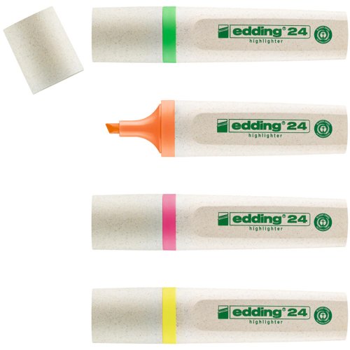 - As there is only one planet earth, every little contribution to the conservation of resources is important. For example with the help of the edding 24 EcoLine highlighter, which is made from at least 90% renewable resources and has now been awarded the Blue Angel eco-label. It highlights important notes or text passages in both luminous and soft pastel colours.