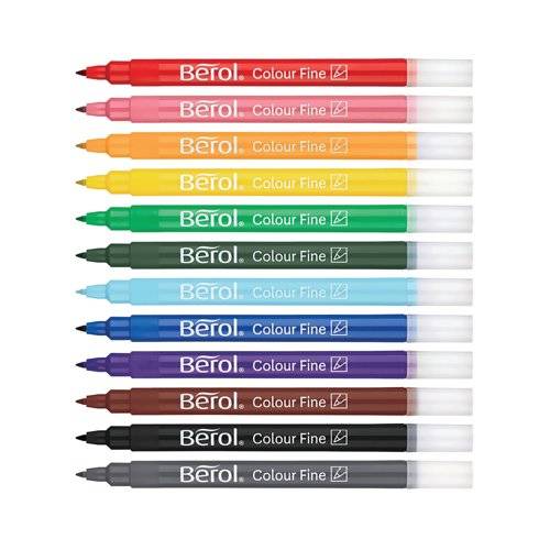 Berol by Paper mate colour fine colouring felt pens are excellent value for money. Hardwearing and long lasting the ink reservoir fills the whole length of the barrel which means they last more than twice as long as ordinary colouring pens!.
