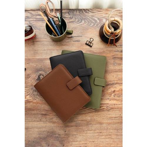 A gender-neutral organiser created with sustainability and lifestyle organisation in mind. Crafted from vegan grain leather made from 100% post-consumer recycled plastic and featuring 100% recycled, fountain pen friendly paper, this collection offers a stylish yet conscious choice. With the innovative feature of charcoal removable rings, the Camden redefines flexibility and functionality, making it easier than ever to customise any planning experience. Supplied in black.