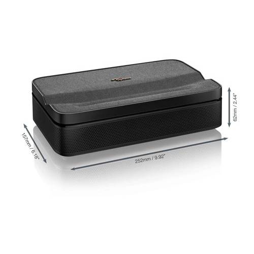 With an ultra-short throw lens and innovative Time-of-Flight (ToF) technology for auto keystone and focus correction, you can instantly create a perfectly projected 100'' image less than 25cm away from your desired projection surface - ideal for quick and casual viewing.