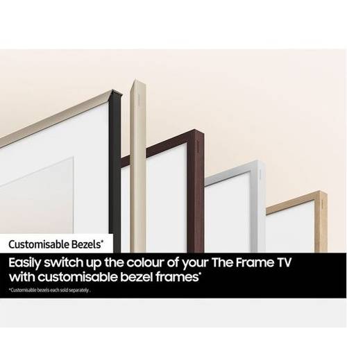 - The Frame TV from Samsung will blend into your home just like a picture frame. The beautifully slim design sits just like a piece of art in your home. When you have finished watching your favourite programme, Art Mode transforms the screen into a picture gallery. With over 2,500 pieces in the Art Store you can pick out your favourites to match your room and your mood. The Matte Display absorbs reflections, so there won't be any distracting glare, even in a bright room. Quantum Dots transform light into lifelike, accurate colour for natural looking scenes with brighter skies and greener grass (Pantone have even given the thumbs up to the colours).