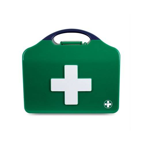 An essential for any workplace, this Reliance Medical First Aid Kit comes with all the essentials to deal with common everyday accidents and injuries. Compliant with BS8599-1: 2019, it is fit for purpose for today's working environments. This Small Workplace First Aid Kit is suitable for low risk workplace of less than 25 employees or high risk workplaces of less than 5 employees. It contains: 1 x conforming bandage, 2 x triangular bandage, 1 x burn dressing, 2 x eye pad dressing, 2 x finger dressing, 2 x HSE medium dressing, 2 x HSE large dressing, 1 x adult foil blanket, 6 x pairs of gloves, 1 x guidance leaflet, 40 x assorted washproof plasters, 1 x resuscitation face shield, 1 x shears, 1 x microporous tape, 20 x cleansing wipes.