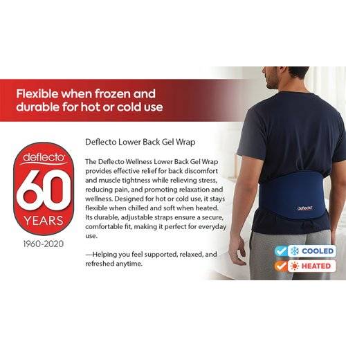 - Deflecto Reusable Cool and Heat Pack for Lower Back eases pain, muscle tightness and menstrual discomfort - with an easy transition between hot and cold cycles. An easy fastening belt design provides secure cooling and pain relief to target the lower back area, applying the pack cold helps to reduce swelling, inflammation, fevers and sprains. Designed for hot and cold use, the pack stays flexible when chilled and soft when heated. To use, let the pad cool completely after heating. Placing a hot pad directly into the freezer can damage the material and reduce product life. To prevent moisture buildup or freezer burn, place in a ziplock or freezer-safe bag. Freeze or refrigerate for at least two hours, or overnight for best results.
