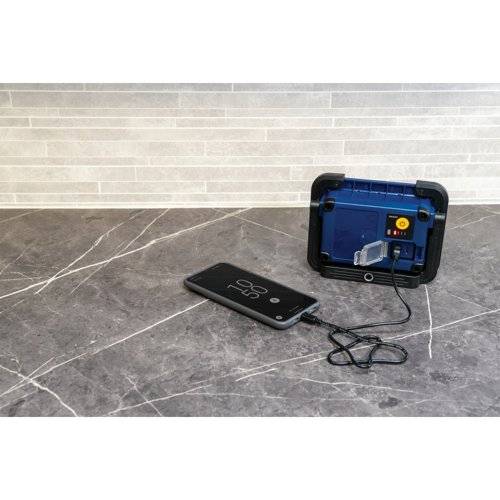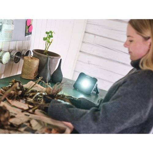 The work light’s stable stand can be tilted for different light dispersions. The Portable also has a USB-A port if you need to use the light as a power bank for your discharged mobile phone, for example.