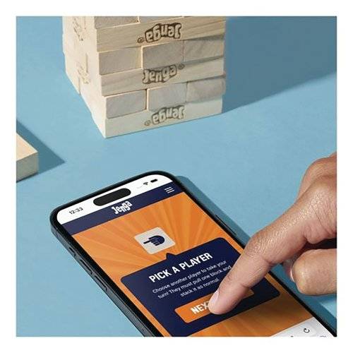 It's the classic block-stacking, stack-crashing game of Jenga! How will you stack up against the law of gravity? Stack the wooden blocks in a sturdy tower, then take turns pulling out blocks one by one until the whole stack crashes down. Is your hand steady enough to pull out the last block before the tower collapses? If it is, you'll win at JENGA! There are also more ways to play with the free web app. With the web app, dare to roll a virtual die on a phone or tablet to get unpredictable challenges. Fun to try and hysterical to watch, device not included with purchase.